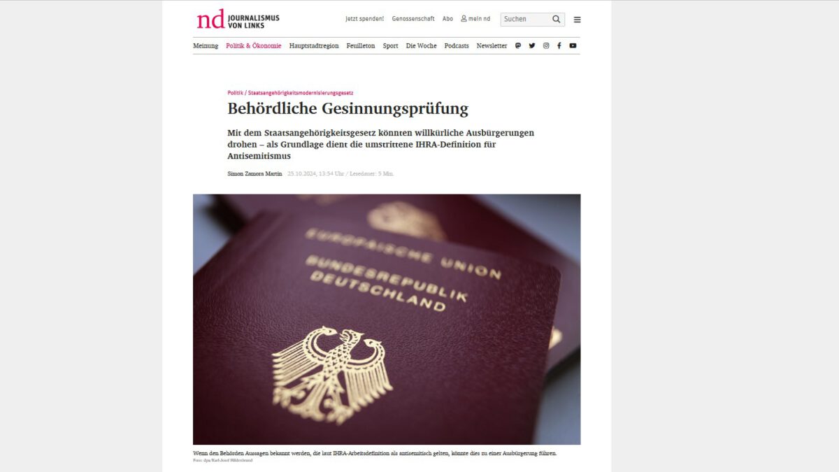 Mit dem Staatsangehörigkeitsgesetz könnten willkürliche Ausbürgerungen drohen – als Grundlage dient die umstrittene IHRA-Definition für Antisemitismus